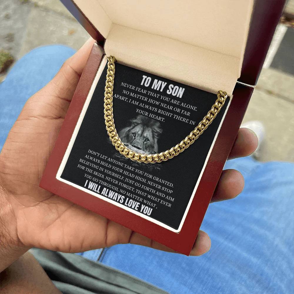 “To My Son – Never fear that you are alone. No matter how near or far apart, I am always right there in your heart.