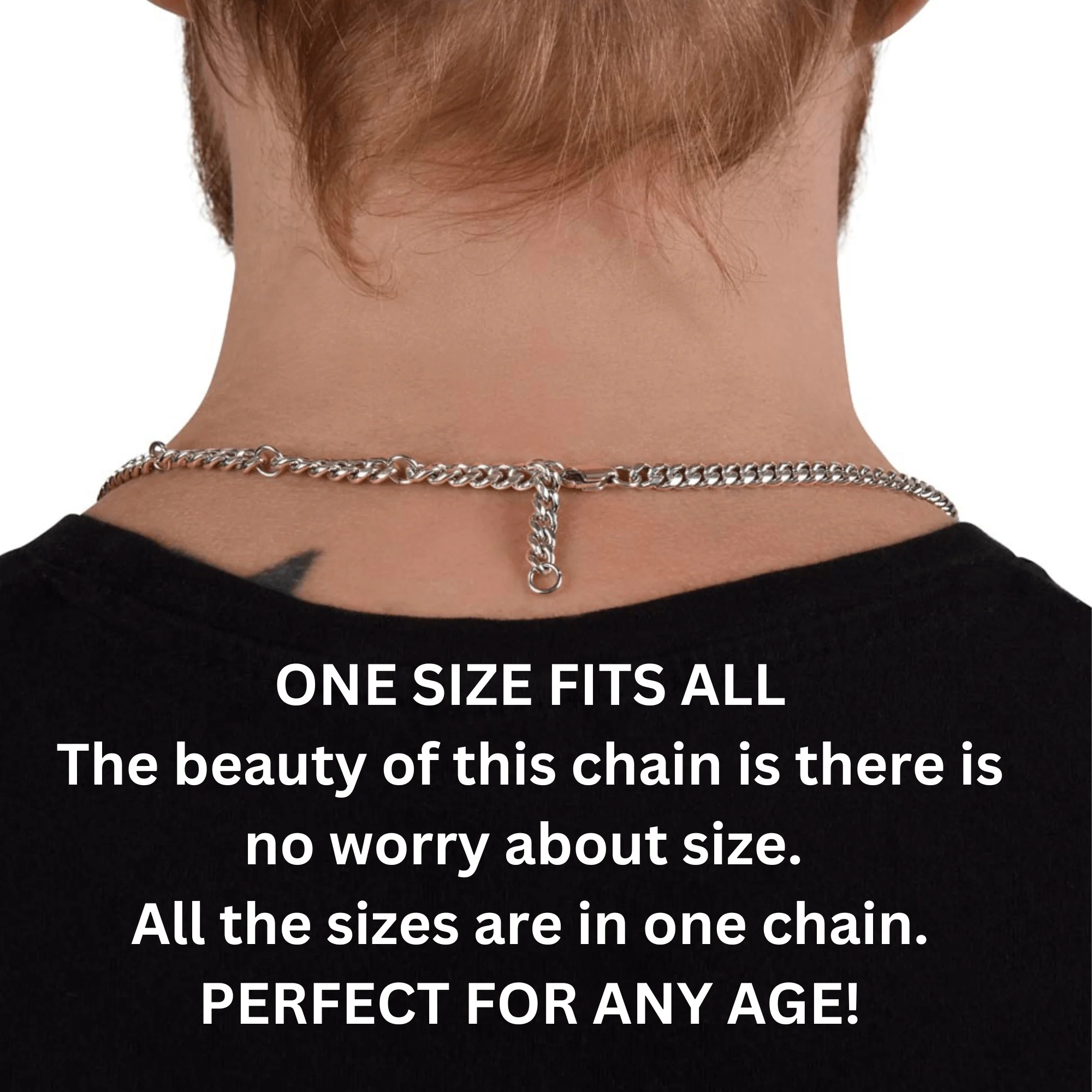This handcrafted costume jewelry chain represents strength, love, and pride — a meaningful gift your son will treasure for years to come.